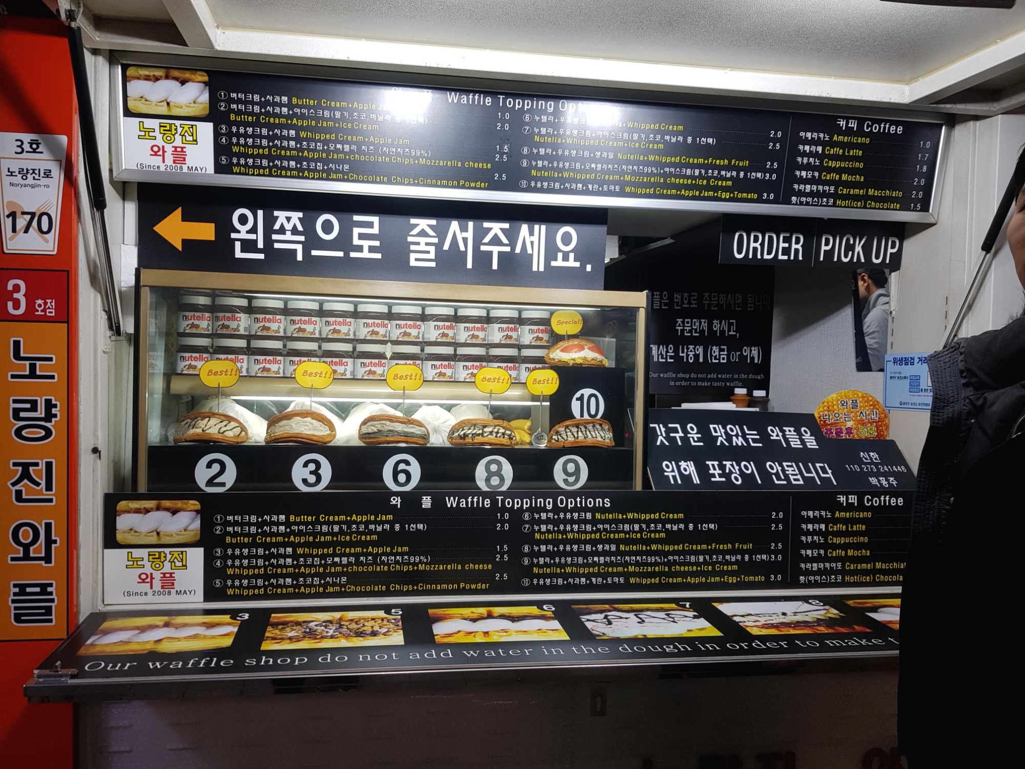 이렇게 두 메뉴를 먹고나니 배가 불러서 잠시 쉬러 만화방을 갔다가 나왔는데 한시간 반이 흘렀습니다. 노량진 컵밥거리의 유명한 오가네팬케이크집이 문을 닫아버렸네요ㅜㅜㅜ 와플을 먹을지 팬케이크를 먹을지 고민했었는데 자동으로 와플당첨입니다.