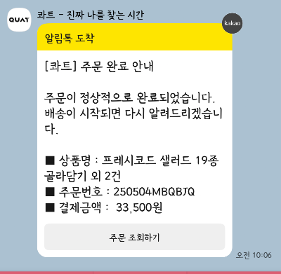 포인트를 열심히 모으고 쿠폰이 날아올 때마다 샐러드 구매해서 식단하는 기쁨~ 콰트를 사용하는 내내 소소한 기쁨이다 히히.