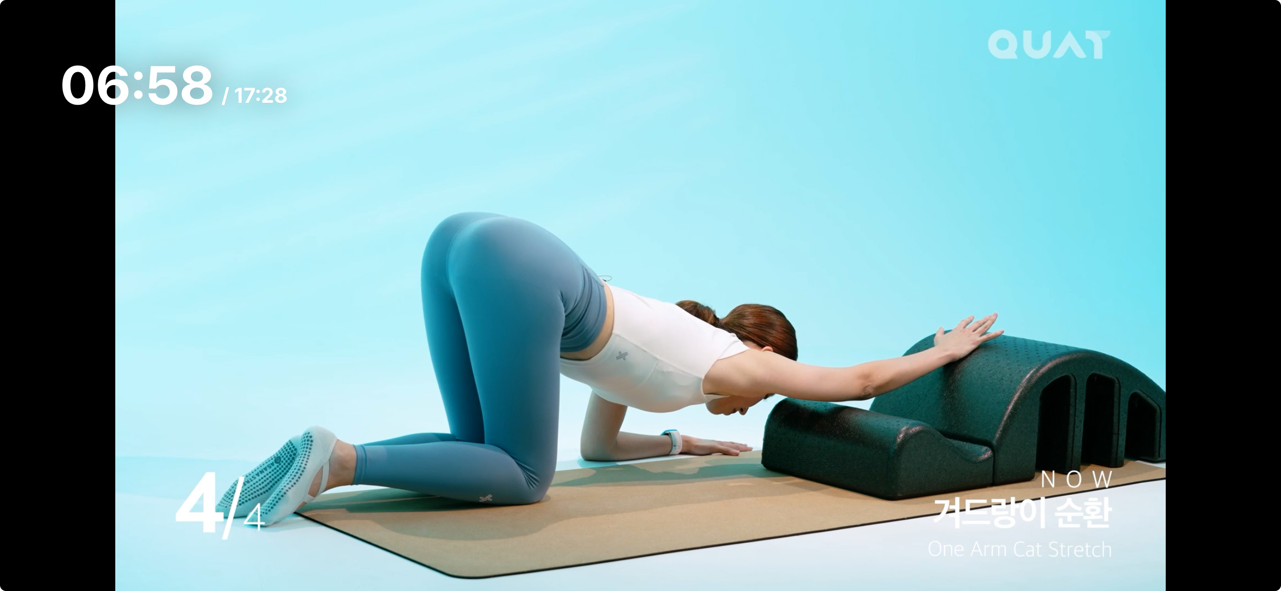 이렇게 순환도 하고 스트레칭도 되는 다양한 강의가 가득하다구요. 물론 저는 자주 하던걸 반복하는 편인데요, 어깨 통증이 많이 좋아졌습니다. 제 몸을 차마 사진으로 올리는 테러는 행할 수 없어서 이쁘신 선생님의 사진으로 대신합니다. ㅠㅠ